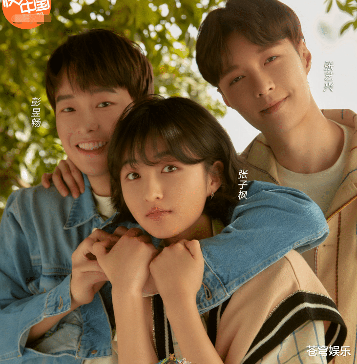 再来看看下面这一张,这一张海报就是张艺兴与彭昱畅,张子枫的合体海报,在这一张海报中三兄妹很有爱,他们三个人站在一起,一起看向镜头,画面很温馨,真的就像是两个哥哥保护着妹妹。