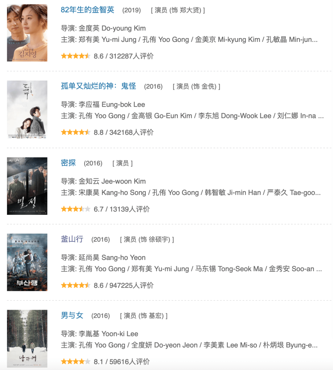 尤其,这些年,孔刘在电影选择上还是非常谨慎的,近几年参演的电影,都是《釜山行》《82年的金智英》这种,即便评价没那么好的《密探》,也有一个特别强大的阵容。