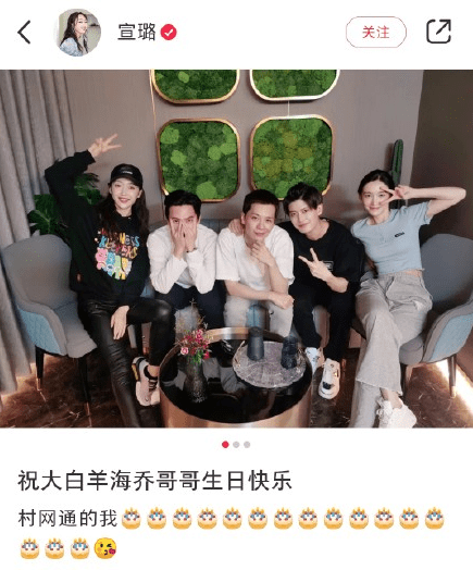 18日,宣璐小姐姐某平台账号分享一张合照,任嘉伦all black卫衣装扮露面,一手揽着徐海乔一手举起小树杈,酷酷的帅气和可爱,和朋友聚餐的超哥很开心的样子。