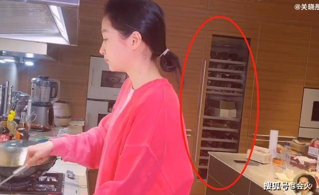 关晓彤家的厨房非常豪华,看起来比普通人家的客厅还大也就算了,占据一整面墙壁的冰箱,也是令人大开眼界,光是酒柜就比人还要高,看起来完全就是富豪家庭。