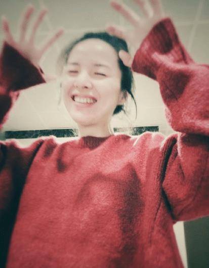 另一张照片中,转换面部表情的她整个人也是风格大变,上一秒还是可爱小甜豆,此刻便成为酷飒御姐,表情拿捏到位,转变自如,拍照都如此有戏,这演技真的可以考虑重新复出拍戏了。