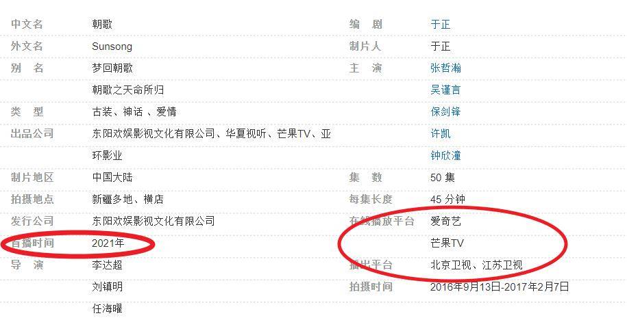 去年《朝歌》就已经拿到了发行许可证,本以为会迅速播出,没想到还是一场梦。而今年张哲瀚大爆之后,很明显这部作品已经有所动作。在网上也是有迹可循,首播时间确定在2021年,而且是双卫视加双平台,这是什么概念?