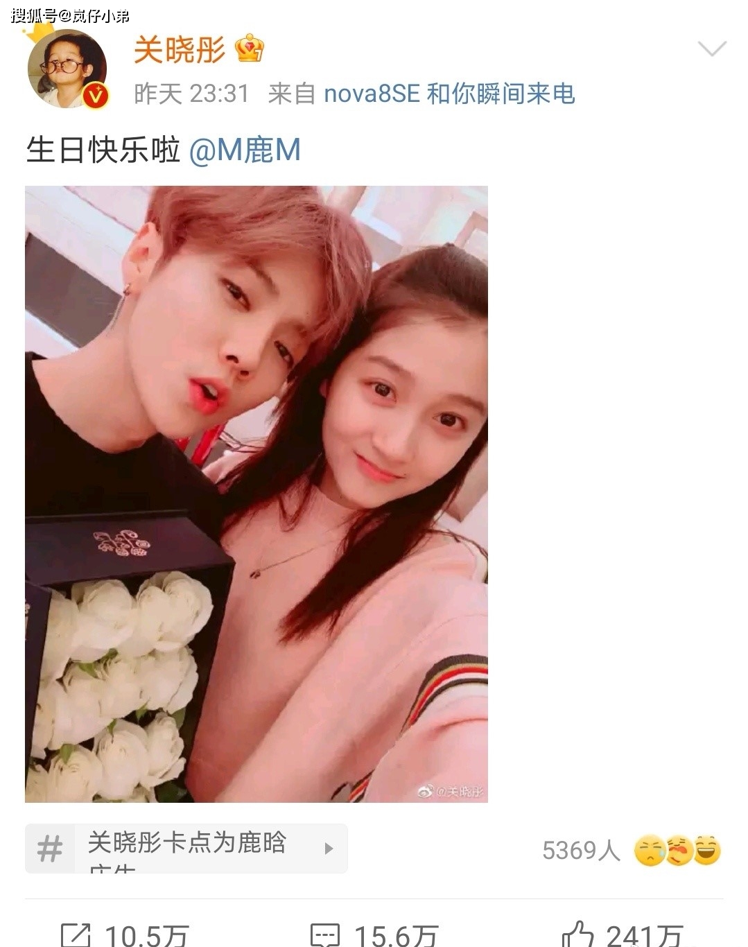 后来,在昨天深夜,关晓彤一条微博直接炸了锅,卡点为鹿晗庆生,并且晒出了二人的全新合照,其实,主要是发布的时间点卡得特别好,23:31指的是关晓彤23岁,鹿晗31岁,所以,这完全就是女方精心选择的时间,万万没有想到在深夜众多吃瓜群众吃了一把狗粮。