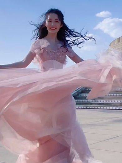 由于换了平底鞋,李沁原地蹦蹦跳跳就完全没压力了,不用担心崴脚或者摔倒,当天的礼服应该是李沁很满意的款式,不光颜色减龄,飘逸的下摆也成为李沁拍照的最好帮手,整个人很灵动!