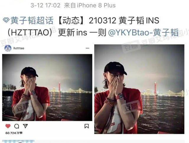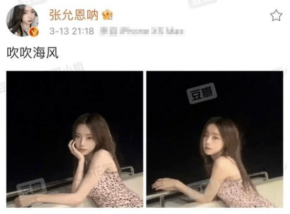 黄子韬3月晒出自己在海边的动态,张允恩隔天就发微博说在海边吹吹风↓