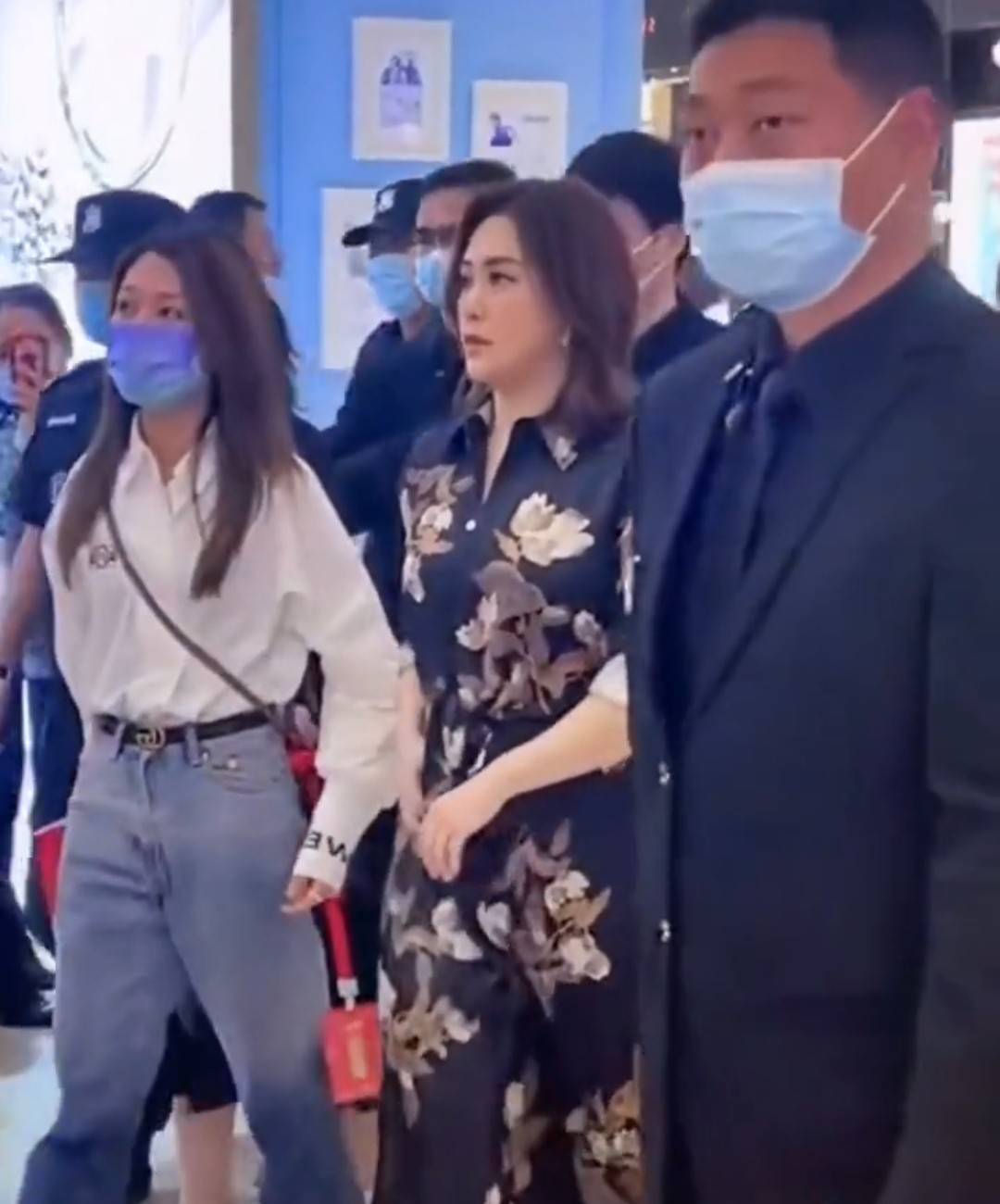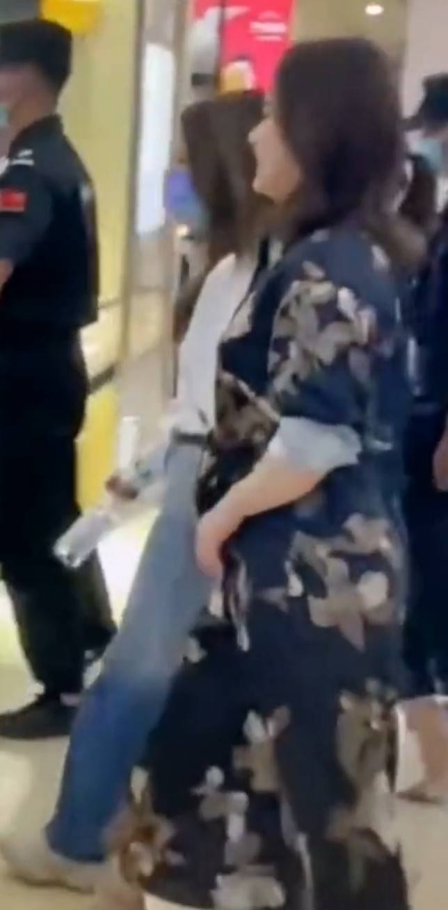 现场聚集了很多人,阿娇在一群保安和工作人员的簇拥下移动,她看上去不是很自在,走路的样子有些笨拙,不时还摇晃几下。从侧面看,阿娇的身型非常壮实,尤其是在连体裤的衬托下更显膀大腰圆。