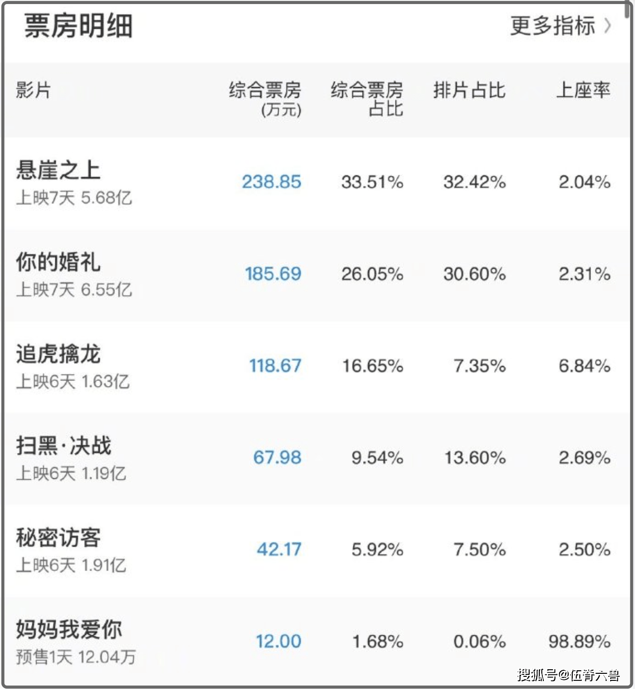五一档终于结束,《悬崖之上》的票房最终没能在最后一天反超《你的婚礼》。