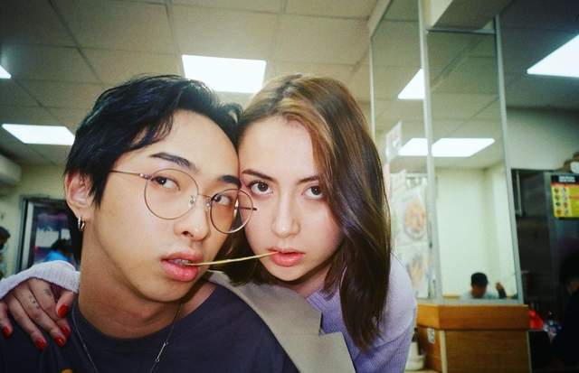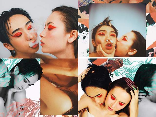 照片中两人都穿得不多,涂了红色的眼影,哈利吞云吐雾,女生亲吻哈利的脸颊,一度引发过网友们的热议。