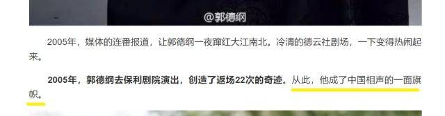 人民日报曾经称赞郭德纲为中国相声的一面旗帜。