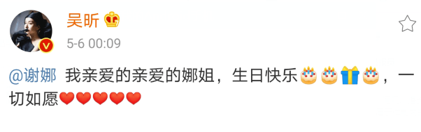吴昕凌晨祝福谢娜:我亲爱的娜姐,生日快乐,一切如愿。哈哈,吴昕的祝福文案最简单。
