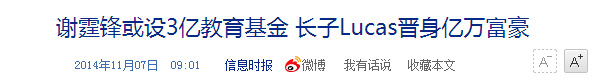 之前港媒曾报道,谢霆锋投入3亿,为孩子成立教育基金。