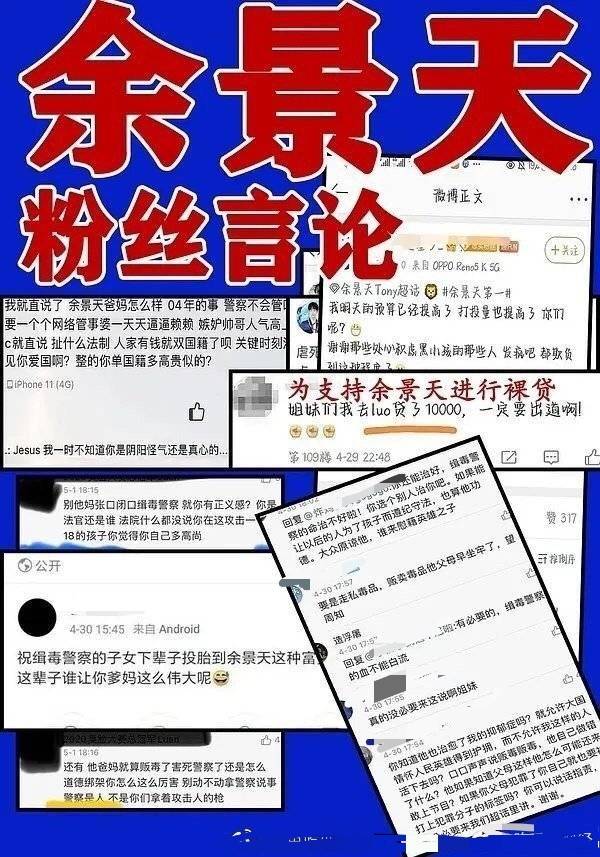 余景天父母经营的娱乐场所疑似多次涉黄涉毒、余景天本人疑似拥有双重国籍、余景天后援会非法集资并且惩罚无辜粉丝、余景天的粉丝为了给其打投竟参与违法裸贷、余景天粉丝在网络上公然侮辱缉毒战士·······