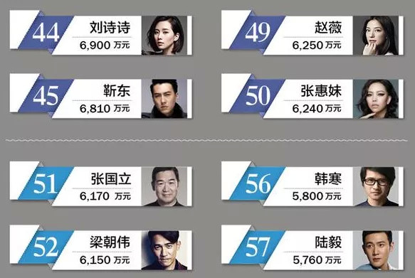 而在2017年的中国名人收入排行榜中,张国立以6170万元的收入排名第51名。