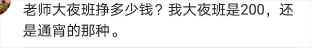 还有网友来了一条“老师大夜班挣多少钱”的回复。